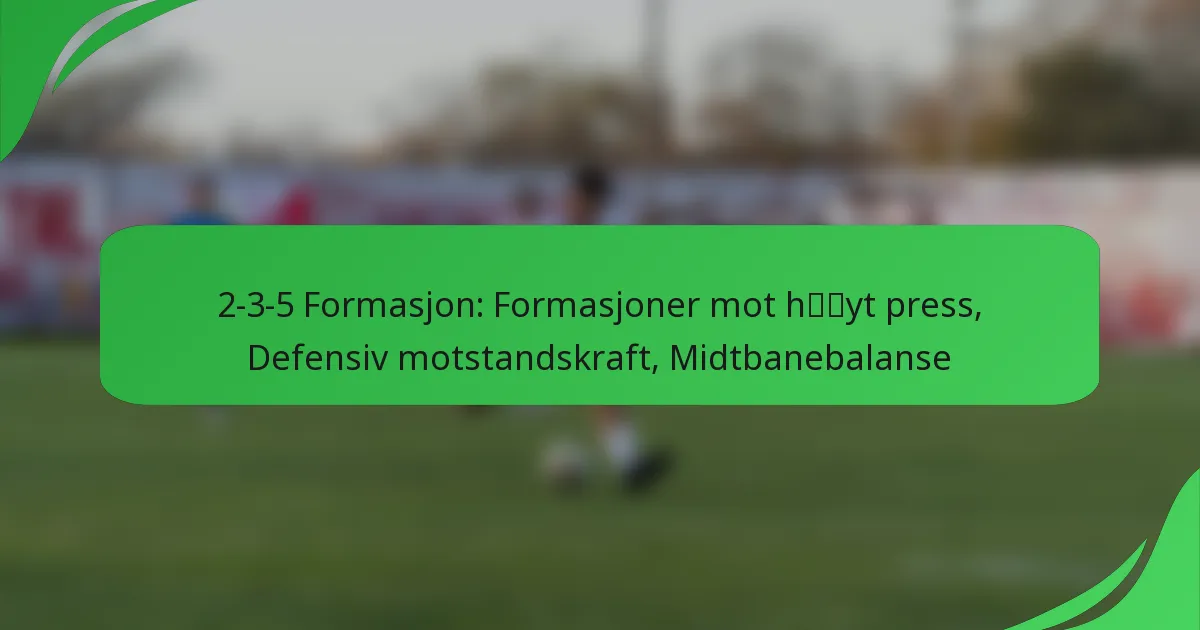 For å motvirke høyt pressende taktikker bør lag som bruker 2-3-5-formasjonen legge vekt på rask ballbevegelse og strategisk posisjonering. Spillerne må trenes til å gjenkjenne pressesignaler og reagere med umiddelbare pasningsalternativer. Å inkludere øvelser som simulerer høyt press kan hjelpe spillerne med å utvikle de nødvendige ferdighetene for å opprettholde ballbesittelse under press.