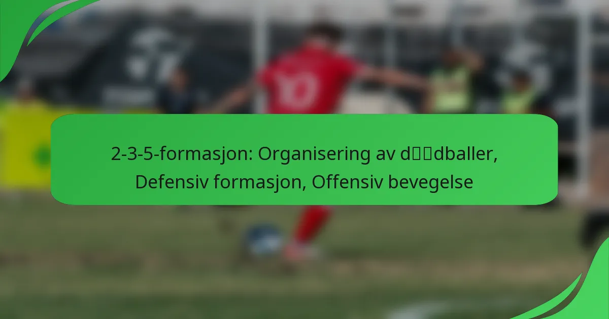 2-3-5-formasjonen er en tradisjonell fotballoppsett som har to forsvarsspillere, tre midtbanespillere og fem angripere, og legger vekt på en aggressiv angrepsstil. Selv om den lar lag dominere ballbesittelse og utnytte en sterk tilstedeværelse av angripere, presenterer den også sårbarheter, spesielt når det gjelder defensiv stabilitet og tilpasning til moderne taktikker. Å forstå både styrkene og svakhetene er avgjørende for lag som ønsker å implementere denne klassiske formasjonen effektivt.
